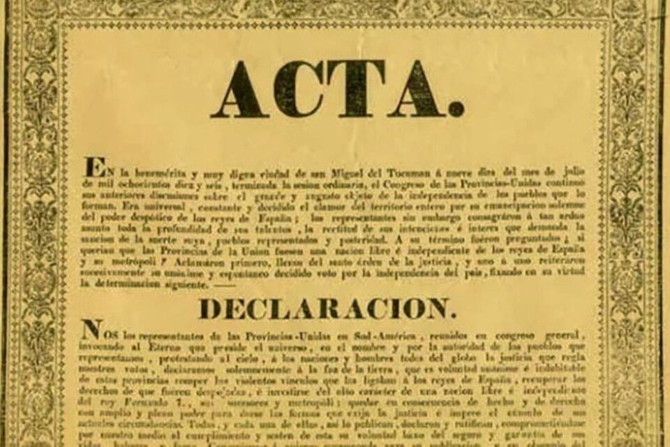 En un nuevo aniversario de la Declaración de la Independencia, este 9 de julio se conmemoran los 206 años de ese día de 1816, donde, según el acta firmada por el Congreso de Tucumán, las Provincias Unidas pasaron a ser «una nación libre e independiente del rey Fernando séptimo, sus sucesores y metrópoli y toda otra dominación extranjera».