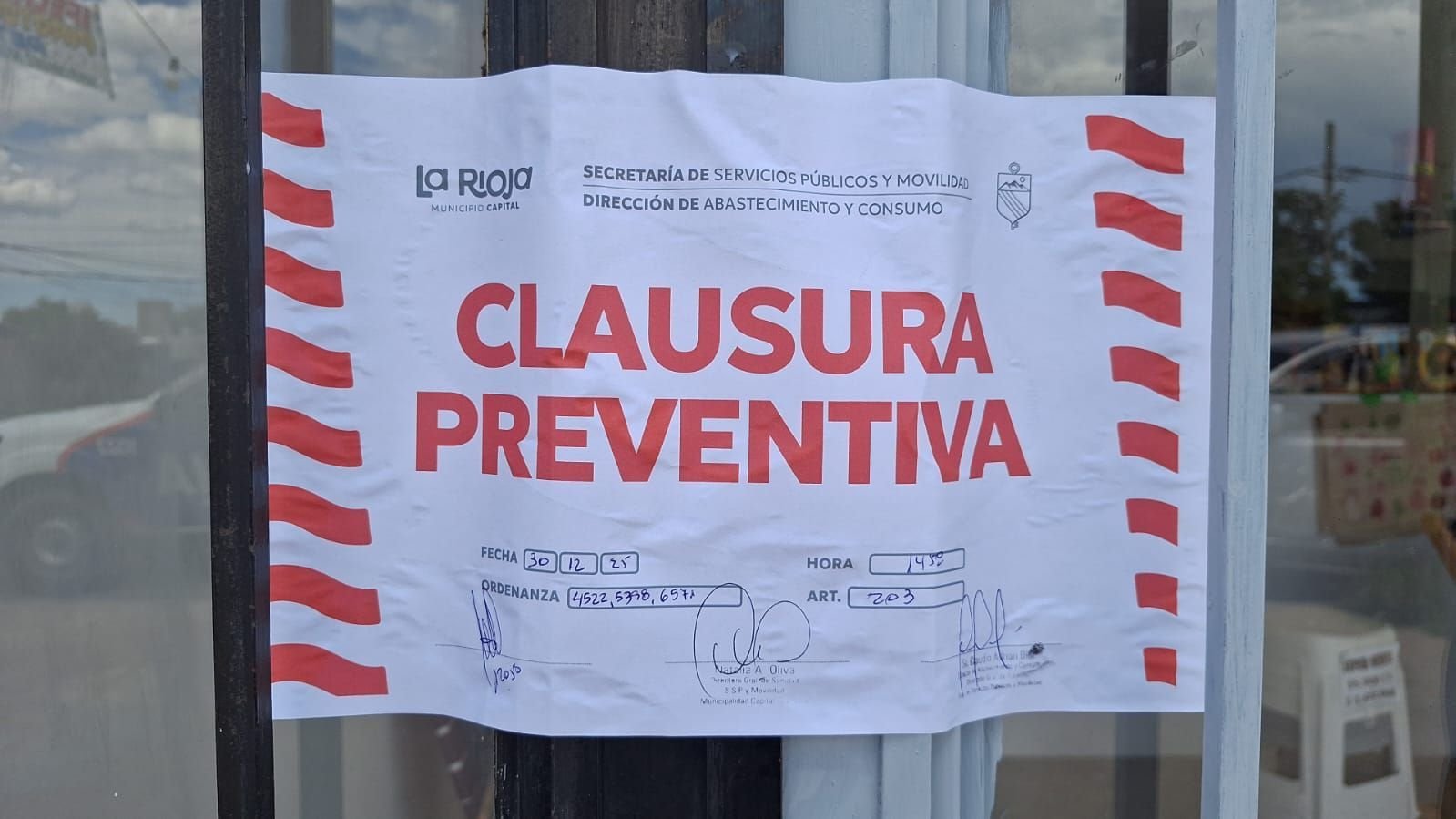Ante esta situación, se dispuso la clausura preventiva del local, en el marco de las ordenanzas municipales vigentes, colocándose la faja correspondiente hasta tanto se regularice la situación.