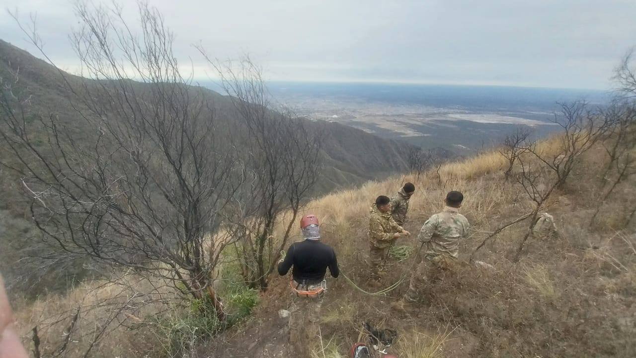 Informó que este martes se realizó un relevamiento en un pozo de agua que se encontraba en medio de la quebrada, con buzos del CAPE. “El resultado fue negativo, chequearon todos los pozos y es un trabajo complejo porque se puede desprender”, dijo.