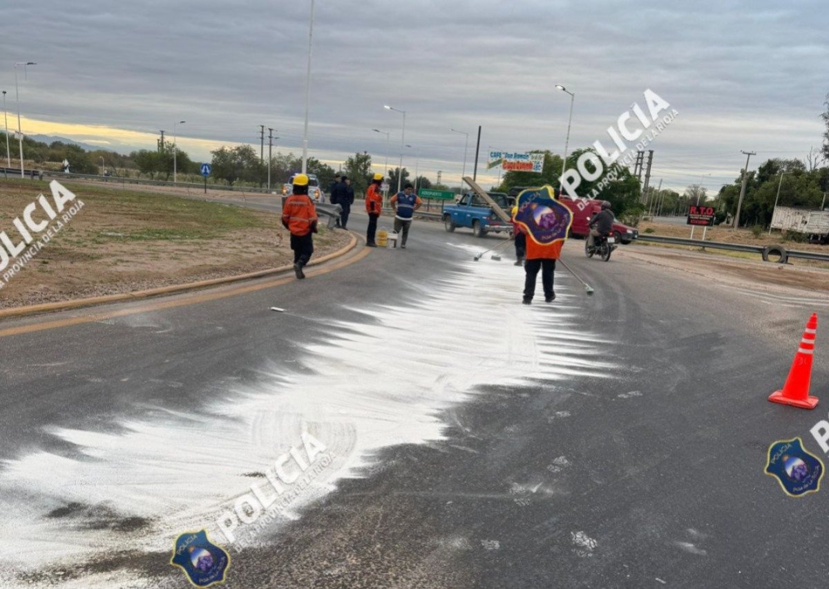 En el lugar, se observó un importante derrame de combustible en la vía pública, lo que representaba un grave riesgo para la circulación.