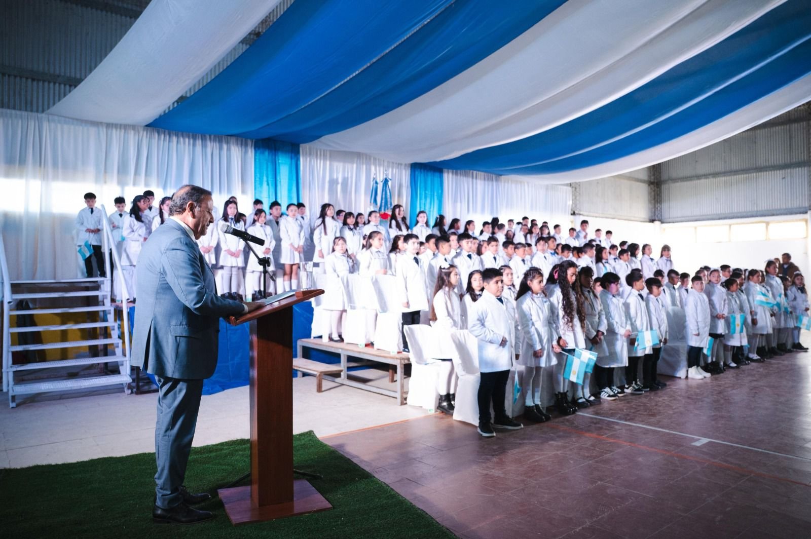 Durante su intervención, el Gobernador saludó a las niñas y niños, al cuerpo docente, a los equipos directivos y a las supervisoras y supervisores, a quienes definió como “pilares fundamentales de la Patria, de nuestra provincia y del departamento”. También expresó su gratitud hacia el pueblo local: “Siempre te reciben respetuosamente, con mucho cariño, con mucho amor, y te abrazan”, señaló.