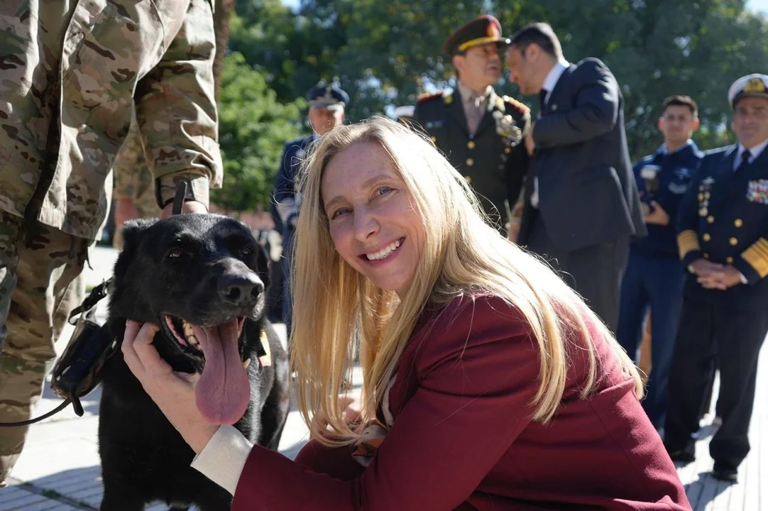 El ministro de Defensa, Luis Petri, y la secretaria General de la Presidencia, Karina Milei, encabezaron este martes en la Plaza de Armas del Edificio Libertador un acto en homenaje a la Agrupación “Perros de Guerra en Malvinas”, en el marco del Día del Animal (29 de abril), en reconocimiento de la labor de los binomios que participaron del conflicto bélico de 1982.