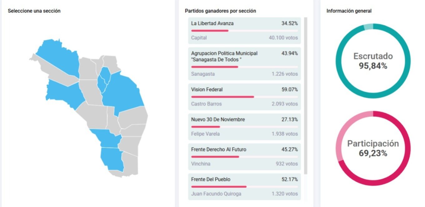 Desde las 21 de ayer domingo, los primeros resultados y las celebraciones comenzaban a marcar el pulso político de la jornada. Departamentos como Chamical, Arauco y Famatina celebraban el triunfo del espacio “Federales, Defendamos La Rioja”, que se imponía con una marcada diferencia sobre La Libertad Avanza y las demás fuerzas que compitieron en estas elecciones legislativas.