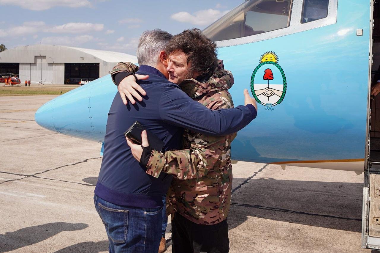 El Presidente Javier Milei viajó a Córdoba donde fue recibido por el Gobernador Martín Llaryora, con quien analizó la situación de los incendios forestales en esa provincia.