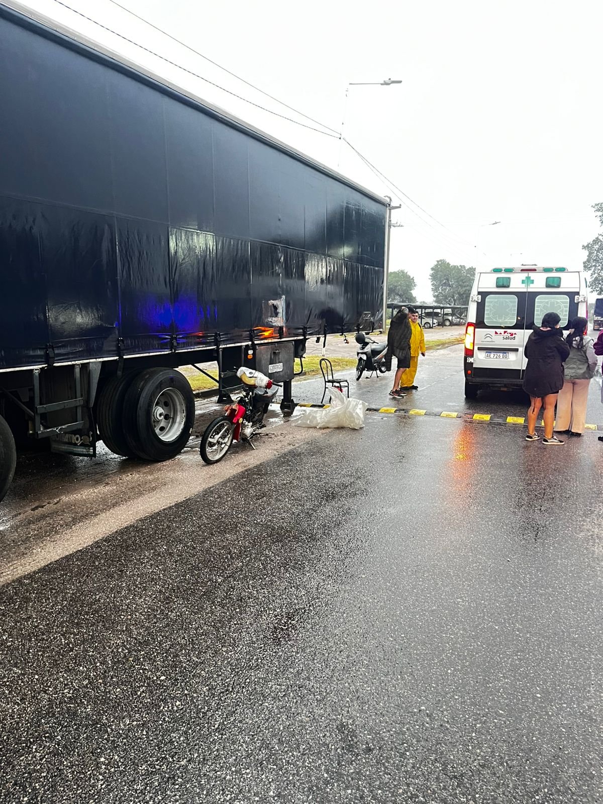 Siendo la hora 06.49 se registra un siniestro vial por Colectora de Ruta Nacional 38 frente fabrica Estrada. En el lugar lo hacía Mario Luis Zarate de 56 años, quien circulaba en una motocicleta Motomel 110cc sin dominio por causas que se desconocen impacta con un acoplado de Camión que lo hacía estacionado.