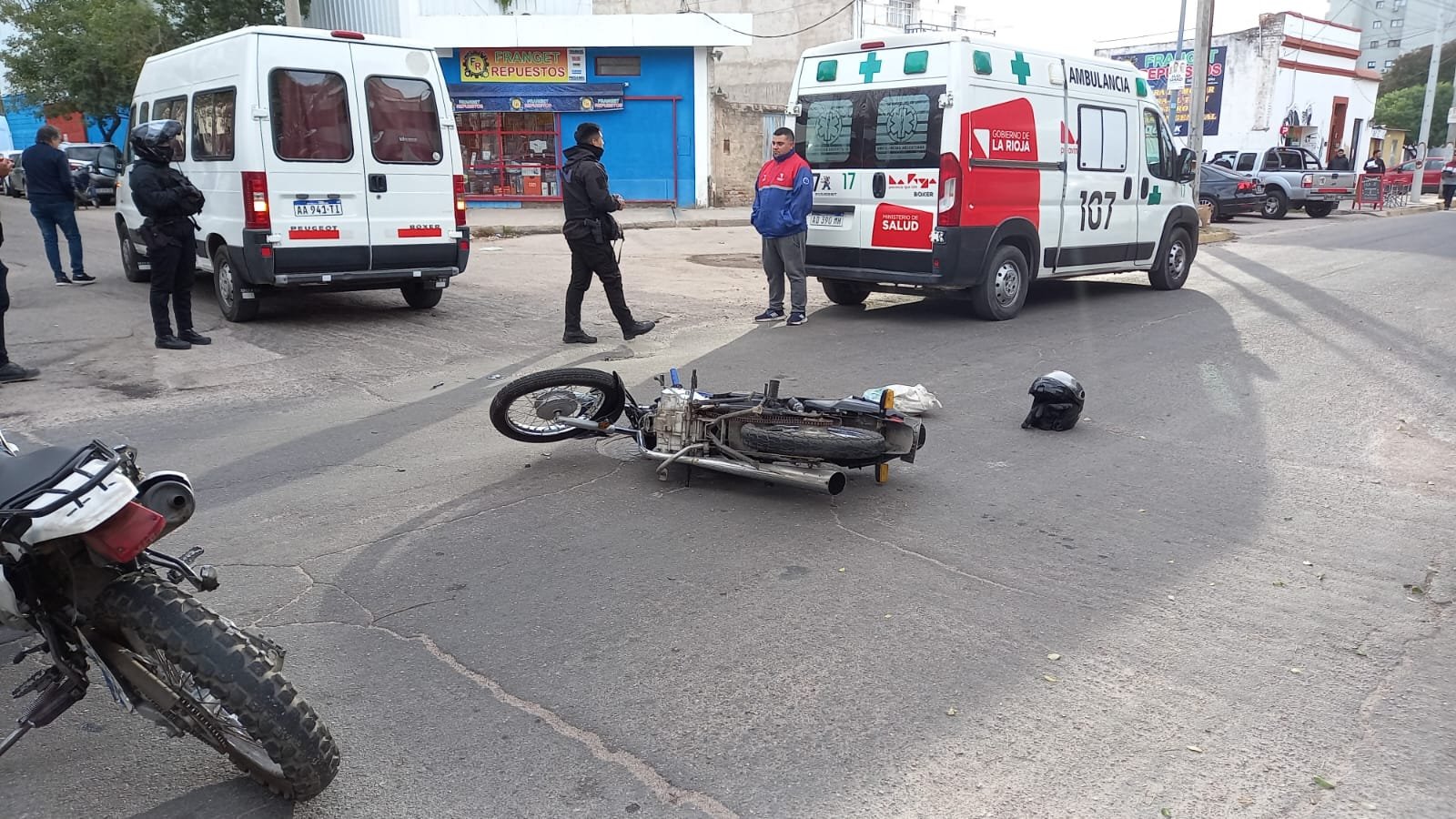 El hecho de tránsito ocurrió en calle Mariano Moreno, entre una moto y una combi que circulaba por esa arteria de Sur a Norte. En la moto circulaba un hombre de Oeste a Este por Rivadavia, cuando colisionó con el rodado mayor, sufriendo un corte en la zona frontal, registrando sólo lesiones leves quedando en el lugar.