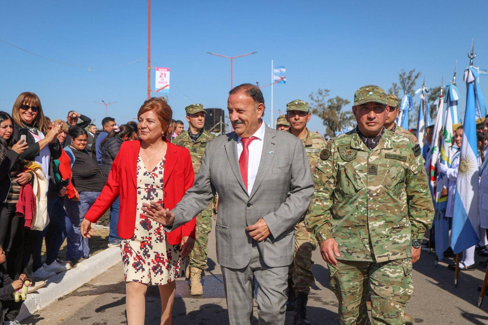 El gobernador encabezó los actos protocolares y destacó la presencia del Estado como motor de desarrollo, recuperación de empleos, obras sanitarias y asistencia tras las inundaciones, mientras la intendenta Dora Rodríguez resaltó la unidad y el crecimiento del departamento._
