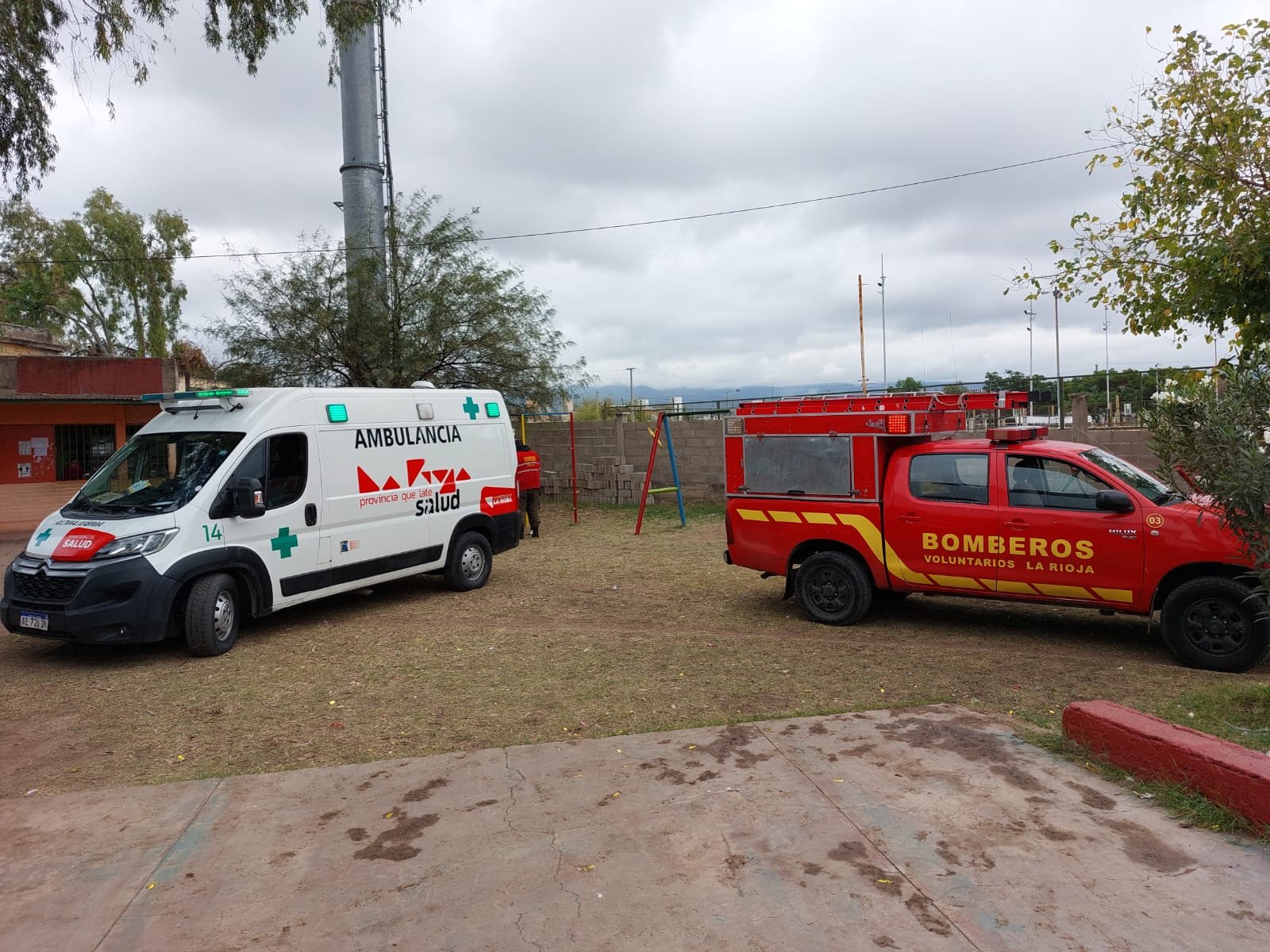 Siendo las 13:55 Bomberos fueron informados por una caída de su propia altura de un menor de 7 años que lo hacía jugando en la hamaca de adentro del establecimiento de la escuela Juan Manuel de Fangio N°1.
